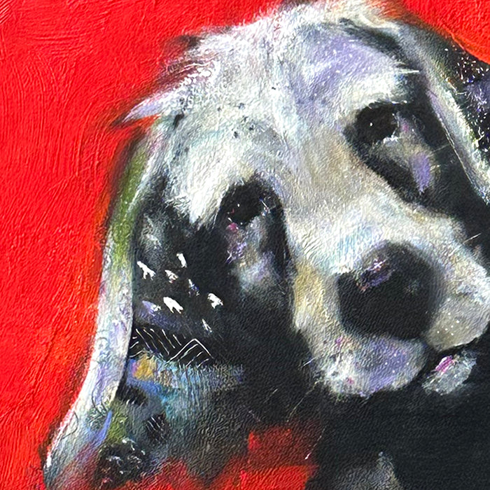 Molly is happily waiting for his next command or treat.